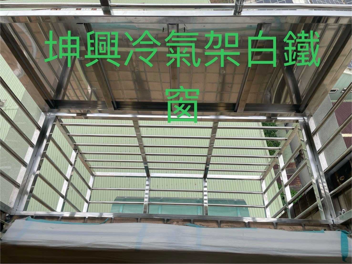 新北採光罩+鐵窗+冷氣架+白鐵吊桿