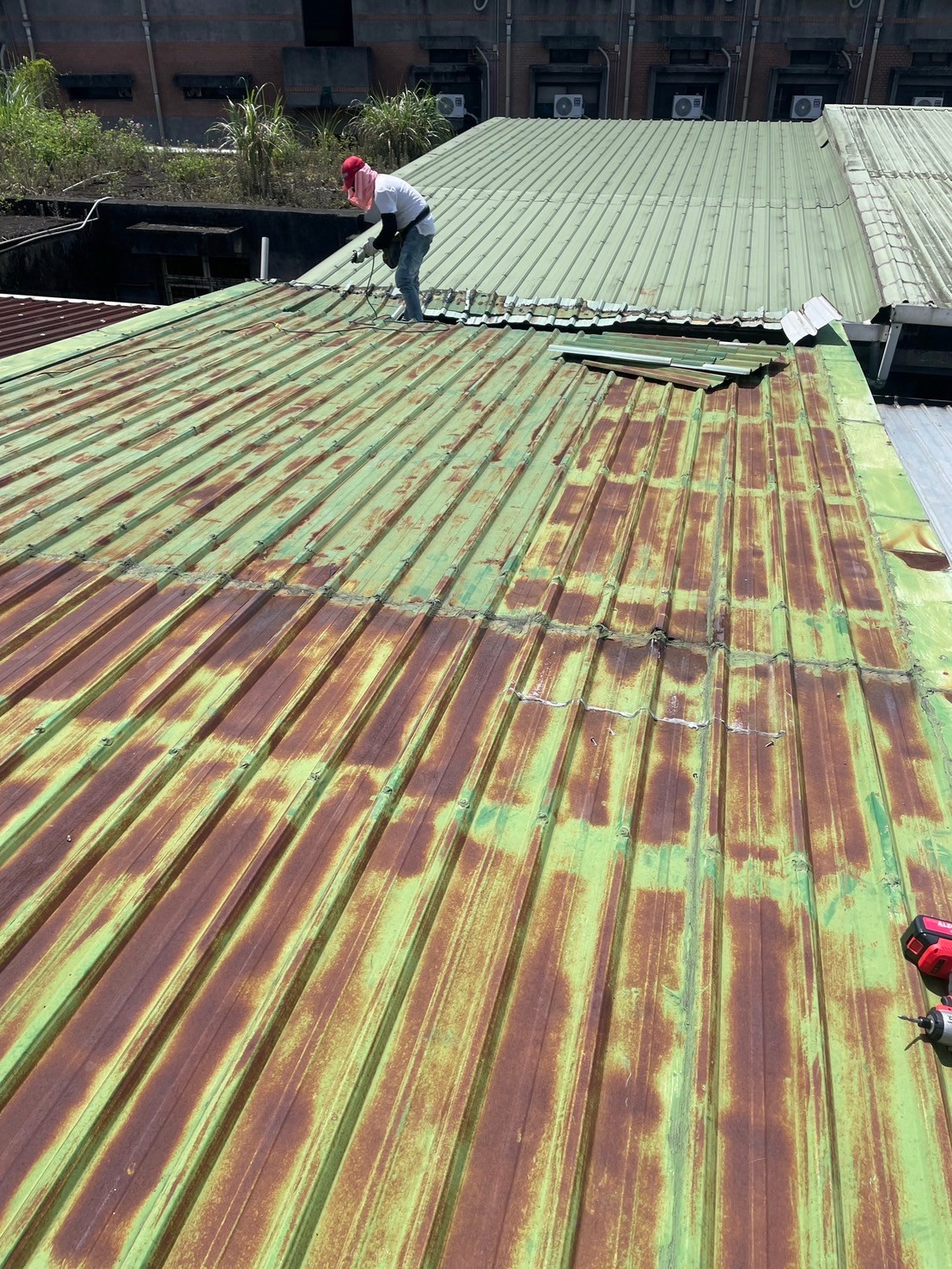 新北舊鐵皮屋覆蓋剩餘烤漆板