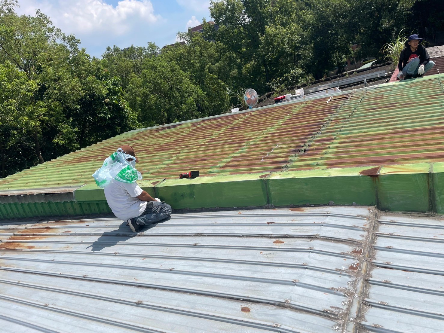 新北拆除塑膠板屋頂+新蓋綠色五溝角浪板