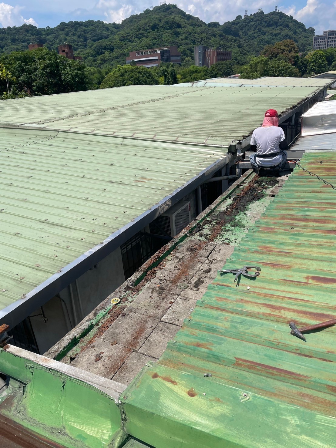 新北金屬鐵工 鐵皮屋頂 矽利康打滿抓漏 玻璃槽工程