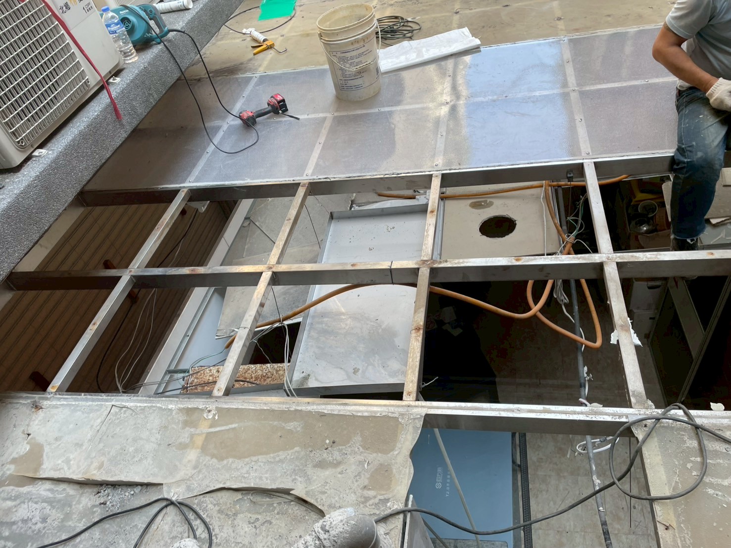 天花板水泥坍塌 做防水 白鐵板XC型鋼骨架支撐